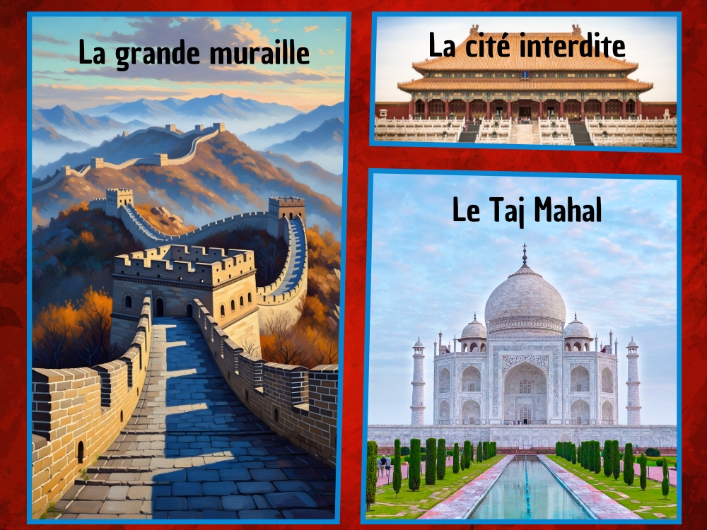 La Grande Muraille de Chine, le Taj Mahal et d’autres trésors architecturaux qui font rêver petits et grands.