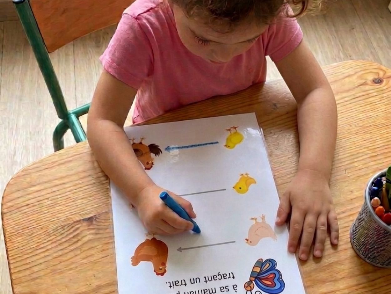 Glissez les fiches dans des pochettes plastifiées : Utilisez un feutre effaçable pour que l’enfant puisse recommencer à l’infini jusqu’à maîtriser le geste.